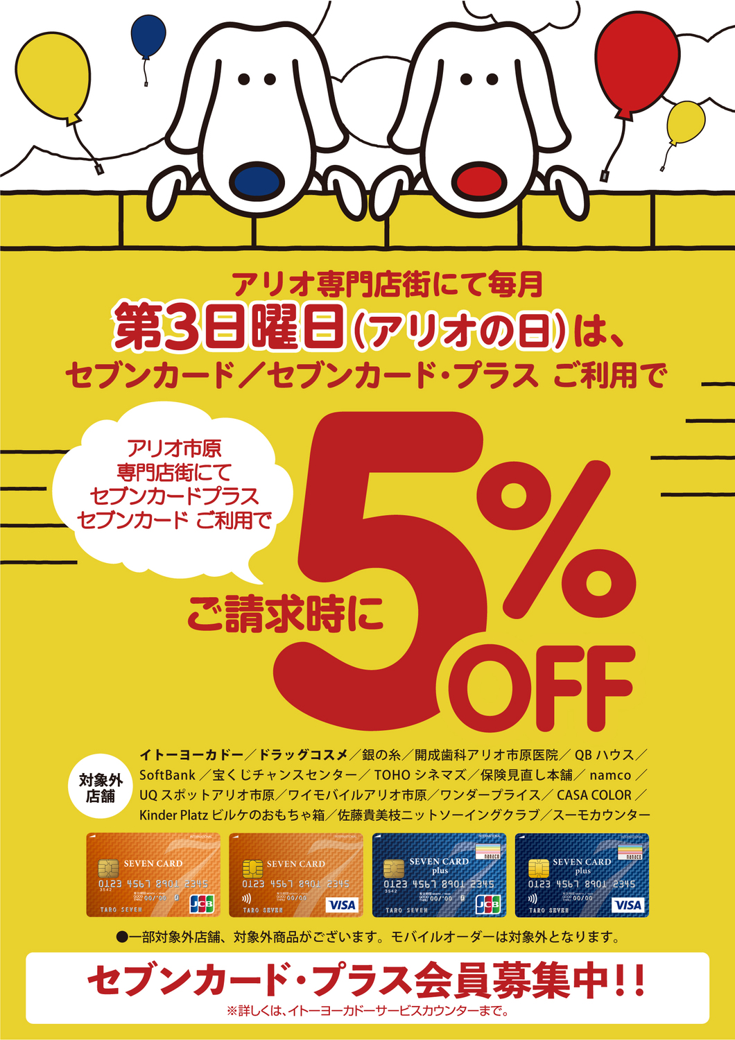 アリオモール専門店にてセブンカード・プラス / セブンカードのクレジット払いで