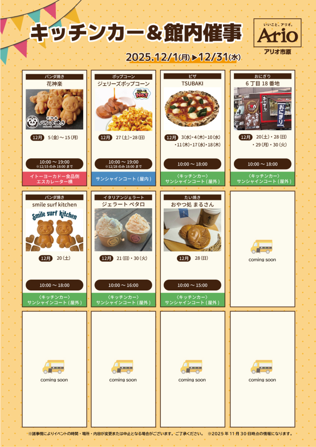 ※11月30日(日)時点の出店情報になります。