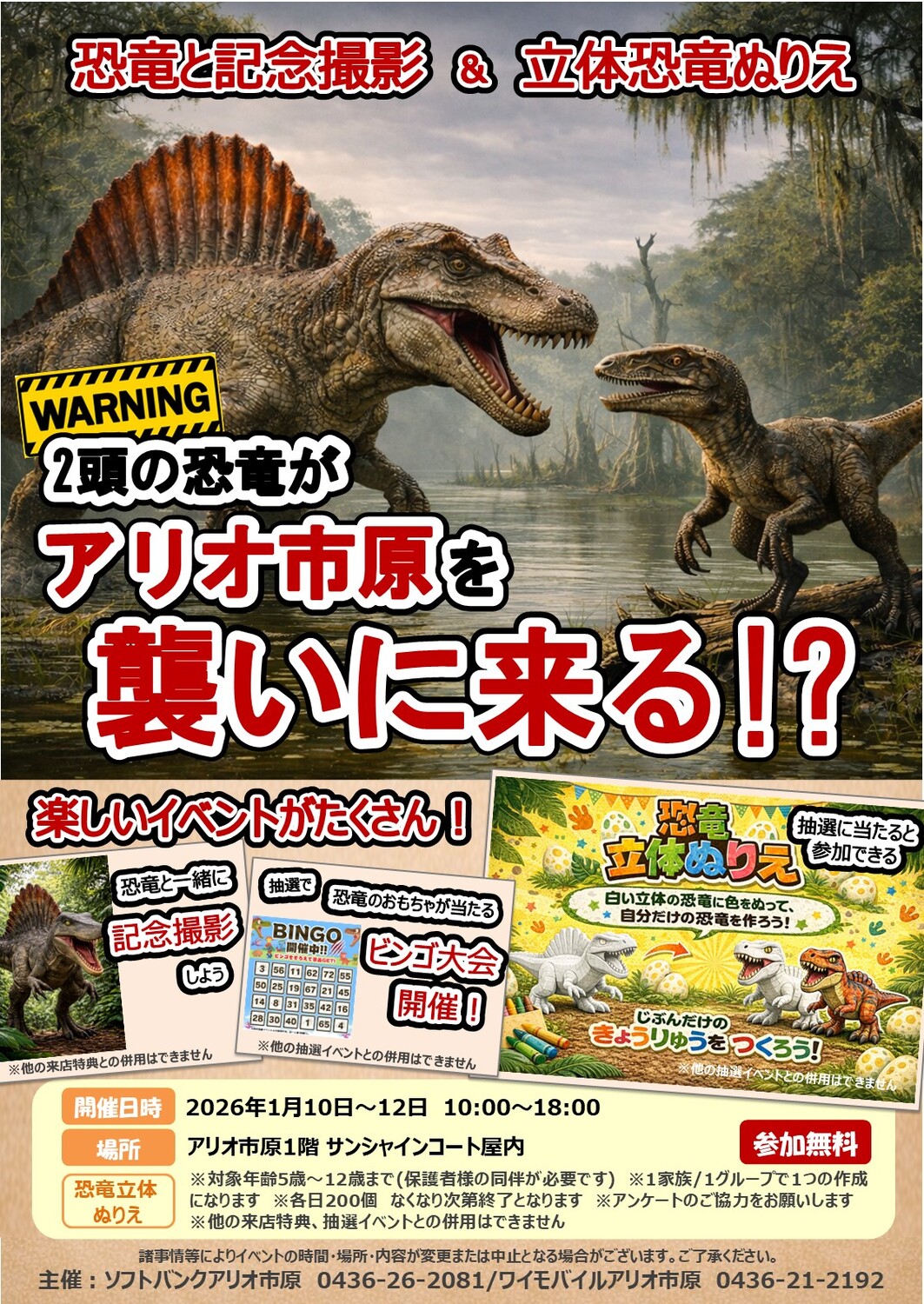 ◆恐竜のおもちゃがもらえるビンゴ大会開催!