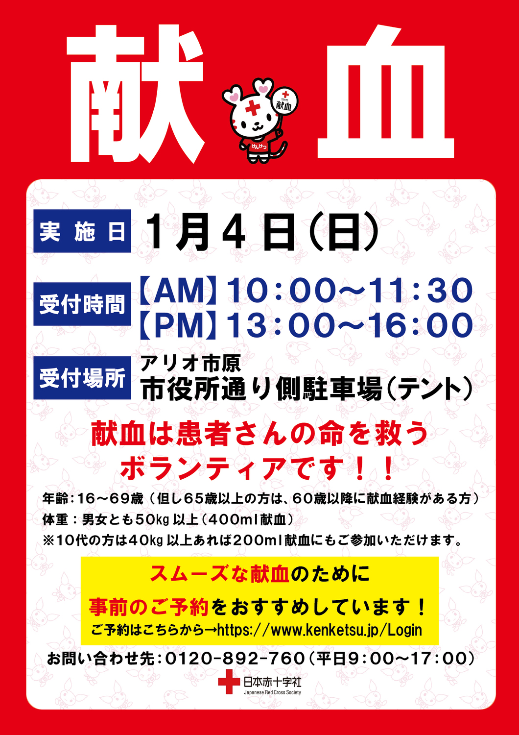 ご予約はこちらから→https://www.kenketsu.jp/Login