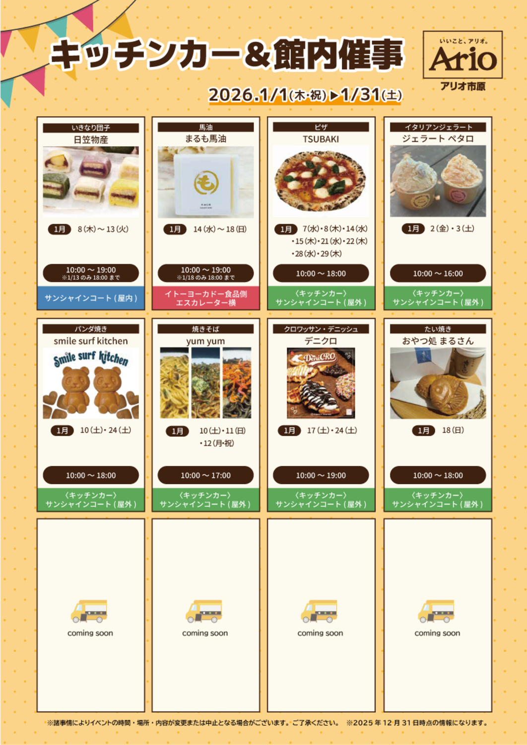 ※諸事情等によりイベントの時間・場所・内容が変更または中止となる場合がございます。ご了承ください。