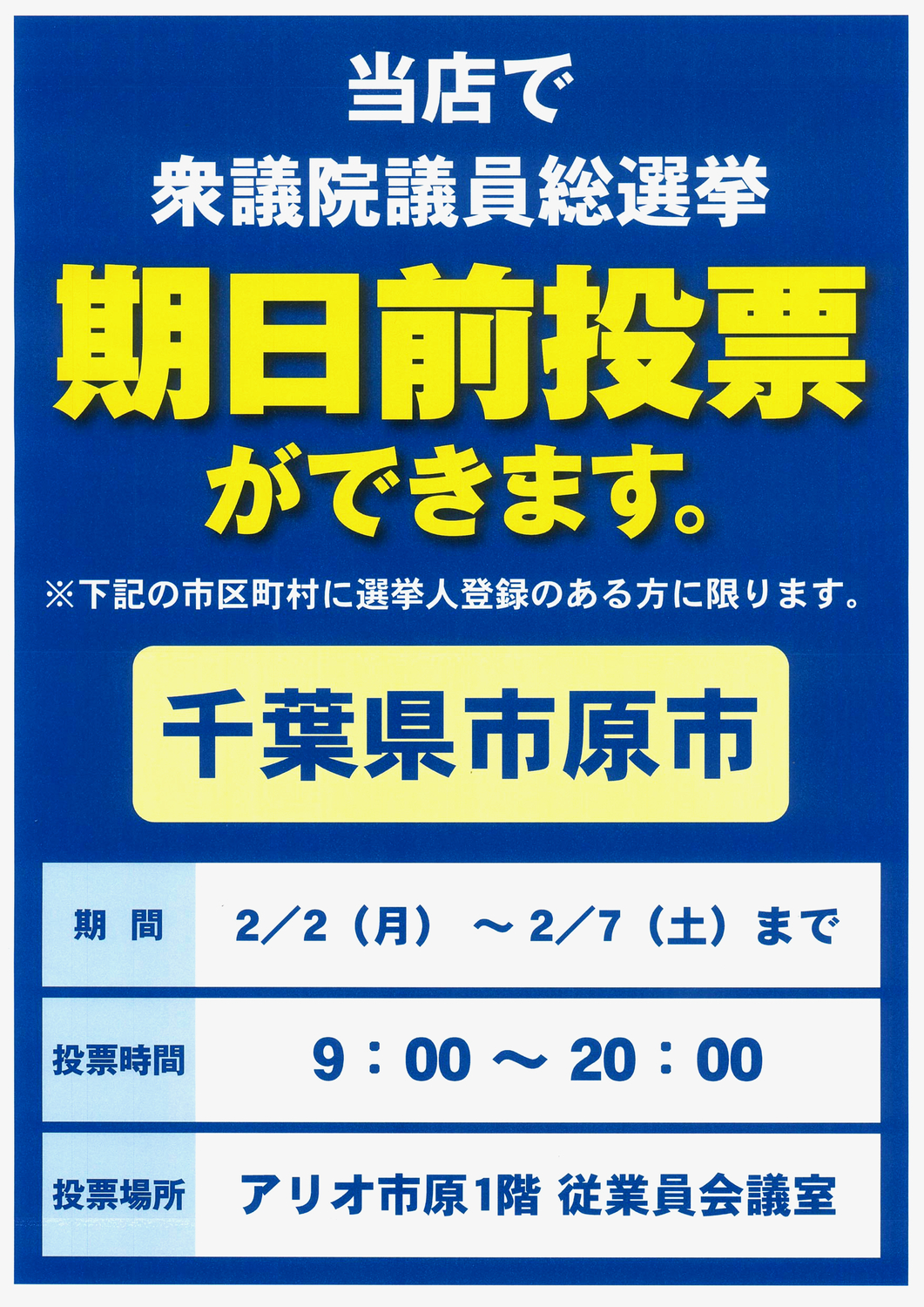 【投票場所】アリオ市原 1階 従業員会議室