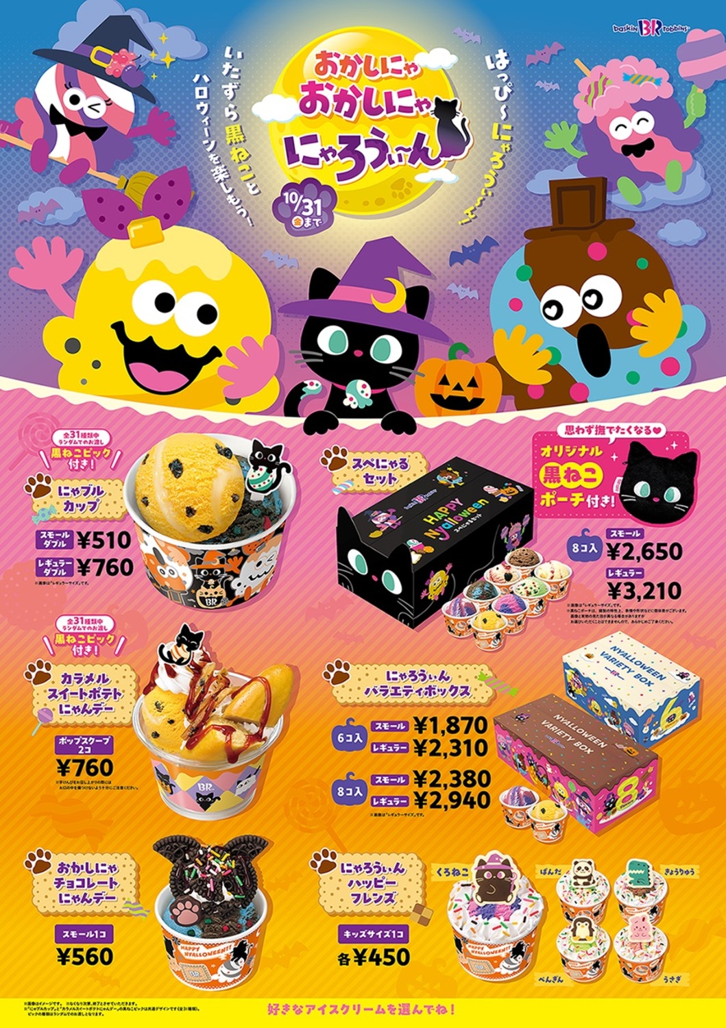 「にゃろうぃんフレーバーズ」をはじめ、31種類のオリジナルデザインの黒ねこピックの中からランダムで1コ付いてくる「にゃブルカップ」や、黒ねこのシルエットをそのまま商品にした「おかしにゃチョコレートにゃんデー」、バラエティボックスにふわふわの黒ねこポーチがついた「スぺにゃるセット」など盛りだくさん!