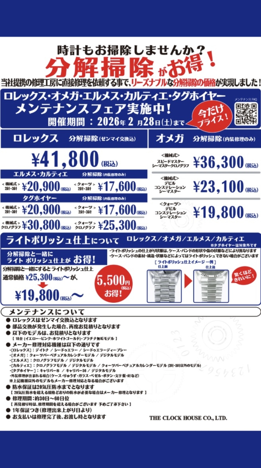 ロレックス・オメガ他 メンテナンスフェア実施中!