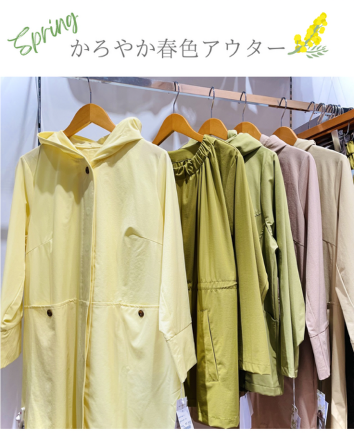 ボンメゾンではかろやかで明るい春色のアウターが入荷中です♪